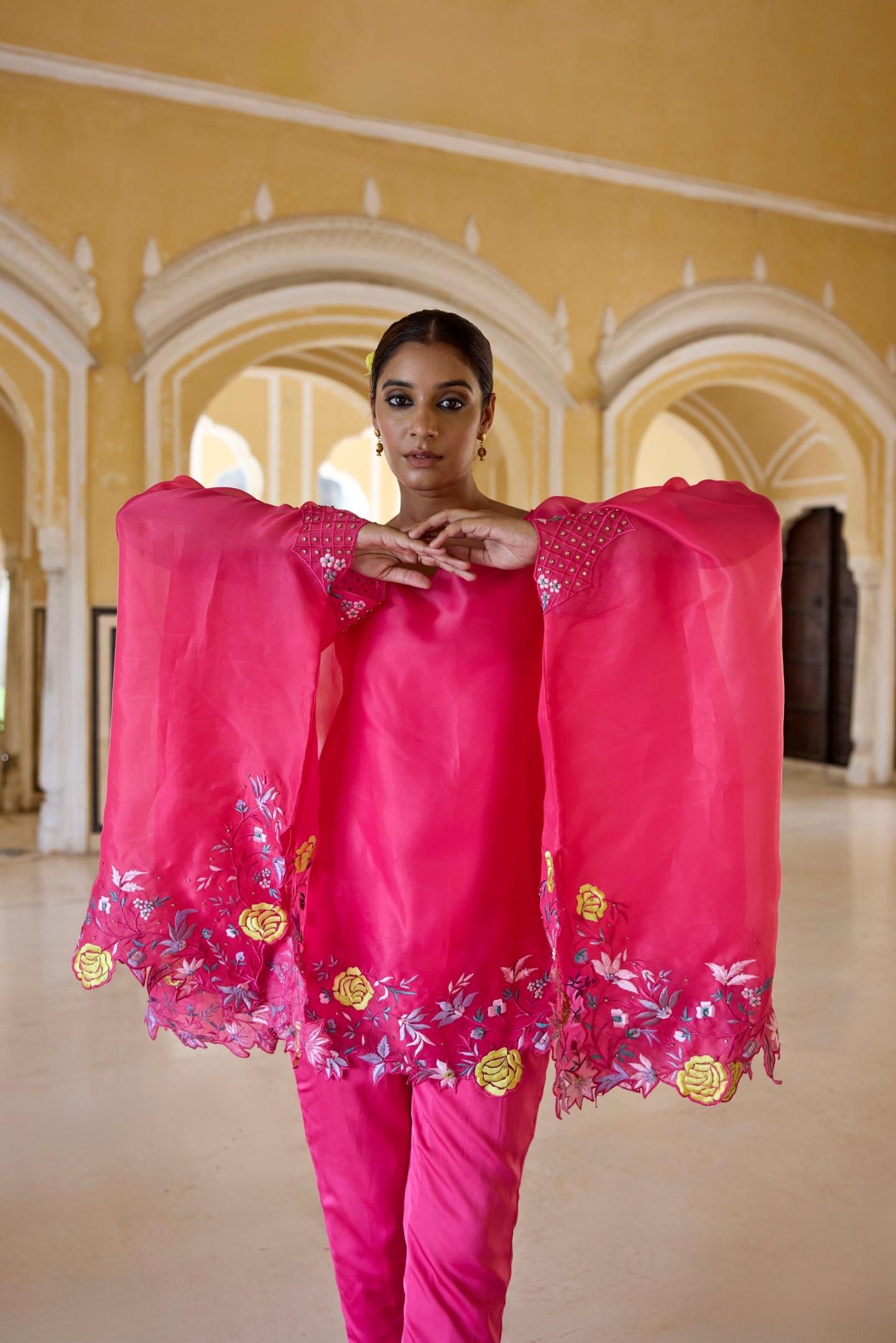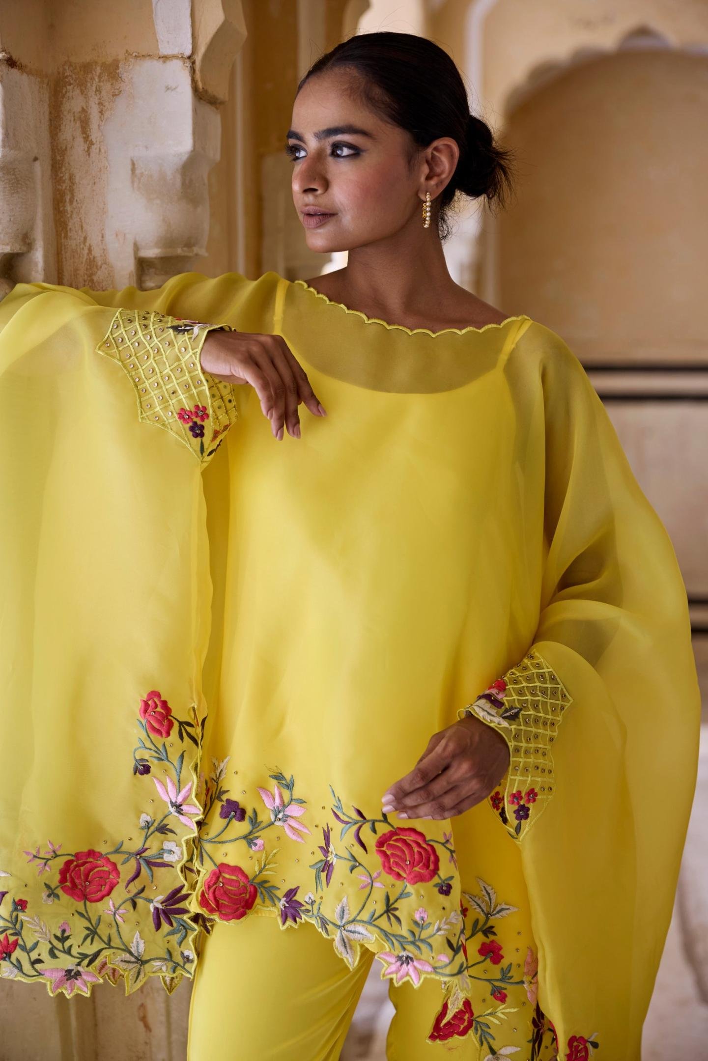 Zipper closure with the semi-elasticated waistband in the pants and adjustable strap in slip for comfort. There will be a slight variation in the colours and embellishments on the products as they are hand – crafted.