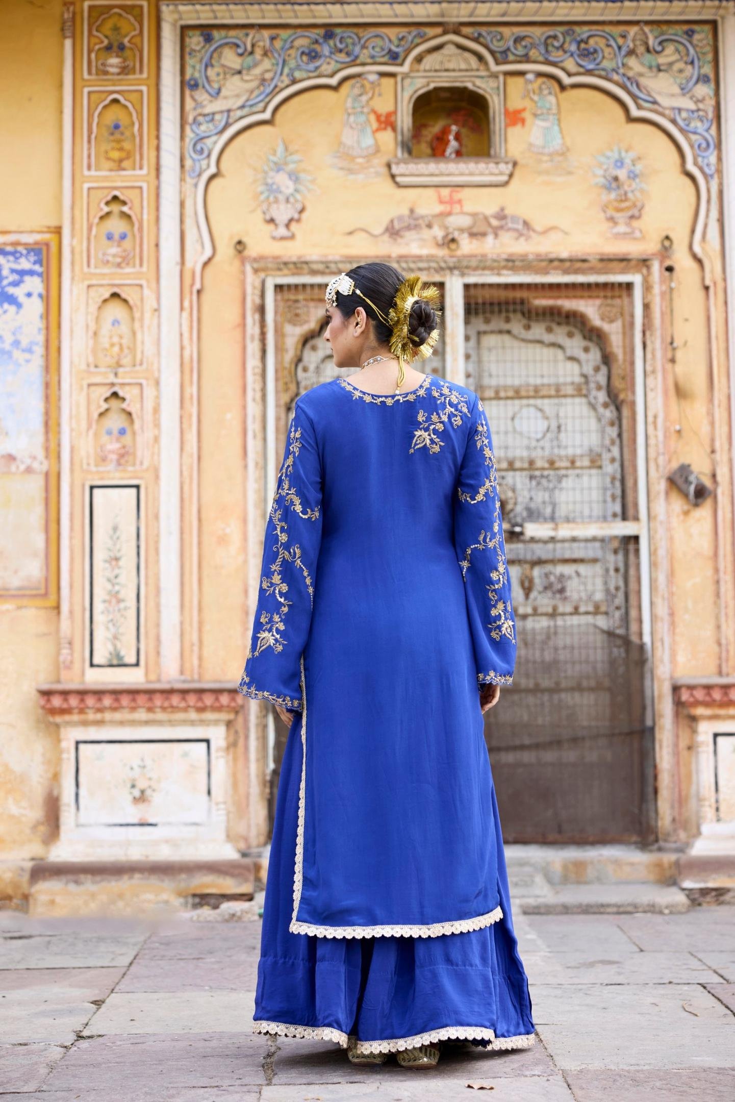 Hook and zipper closure and lace in bottom of skirt with semi-fitted kurti having an embellished neckline with piping edge detailing and Lehariya backing. There will be a slight variation in the colours and embellishments on the products as they are hand – crafted.