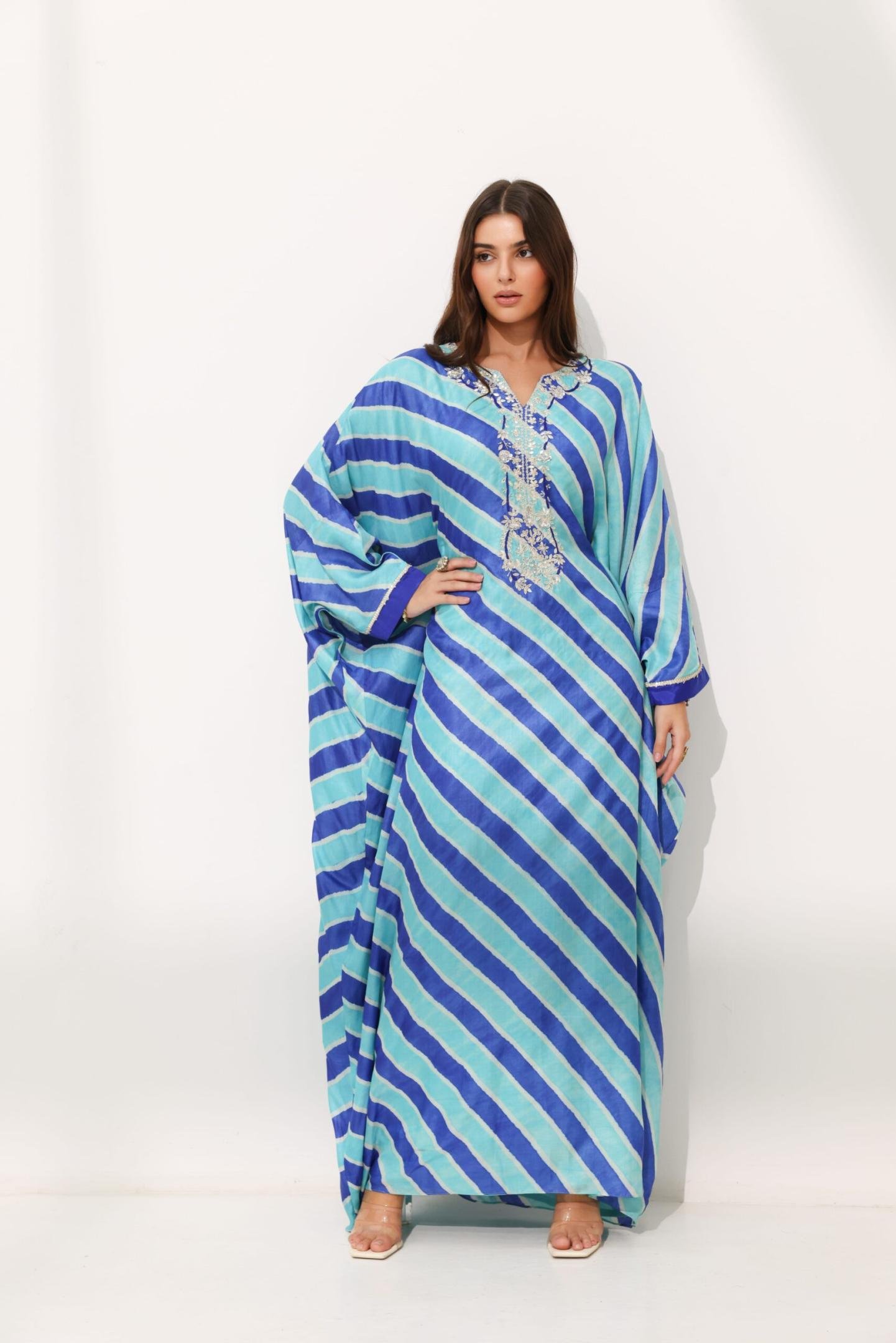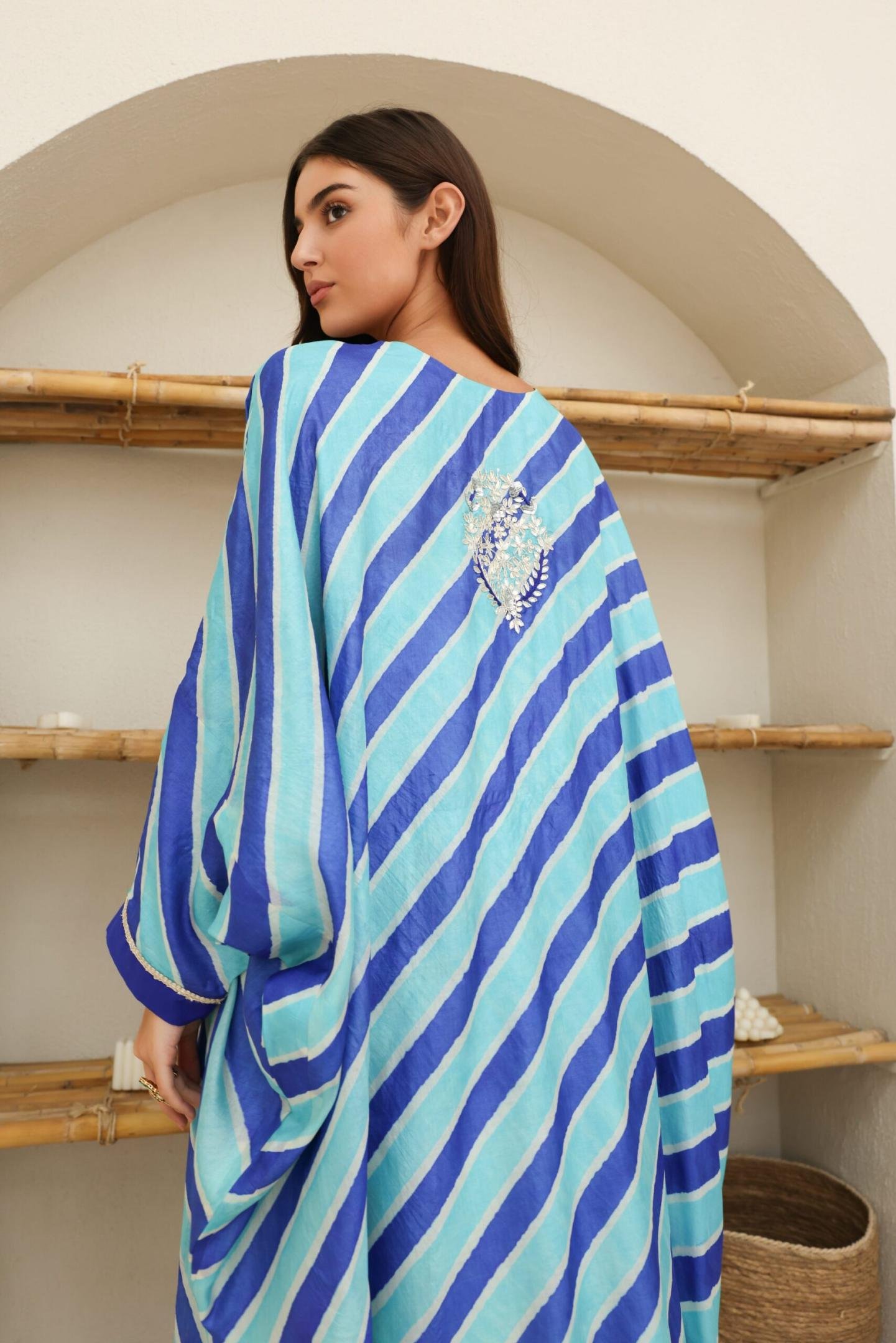 crafted with Tussar silk lahariya, this dress is embellished with Gotta patti and Zardozi work embroidery .